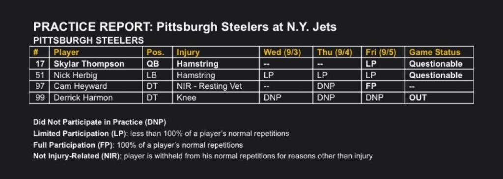 I’m expecting them to be cautious and keep Herbig out if he isn’t 100% so him not playing wouldn’t surprise me. Now what would surprise me is if Cam Heyward doesn’t play. His comments after practice today are the first time I thought there’s a chance he might not be out there. I guess I understand where Cam’s coming from after the way he played last year but man, after all his comments in the offseason and throughout his career about what being a Steeler means, it would be both frustrating and disappointing to see him hold out.