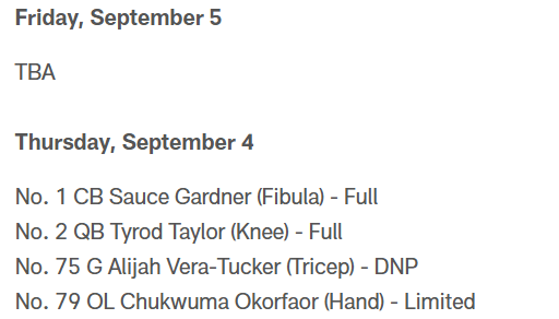 The Jets haven’t announced their Friday injury report yet, but unless anything unexpected happens today it seems like their only loss will be Vera-Tucker, which we already know about. Both teams healthy for the most part heading into the season.