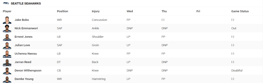 Seahawks Injury Report