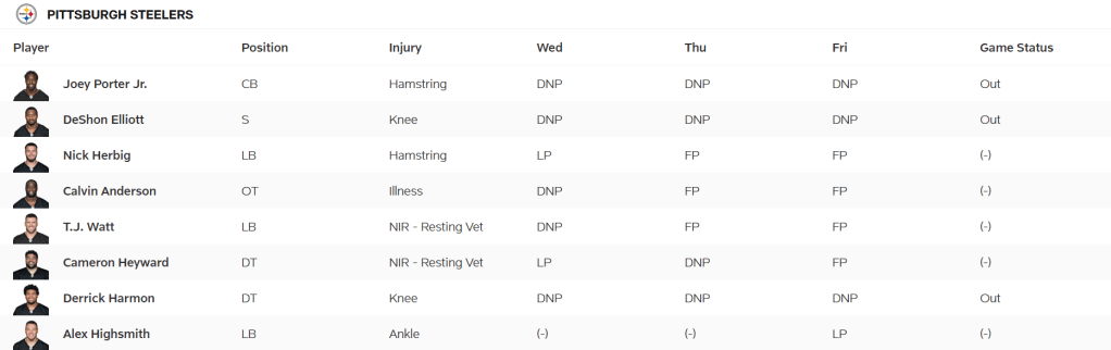 Steelers Injury Report